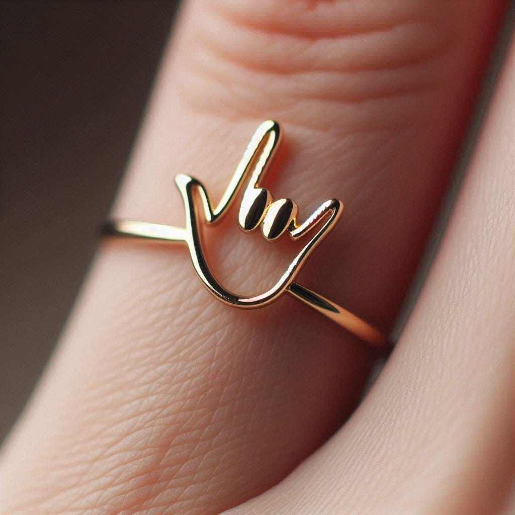 ** Minimalist design featuring an adorable ASL ‘I love you‘ hand sign (11mm diameter) on a 1.5mm wide band