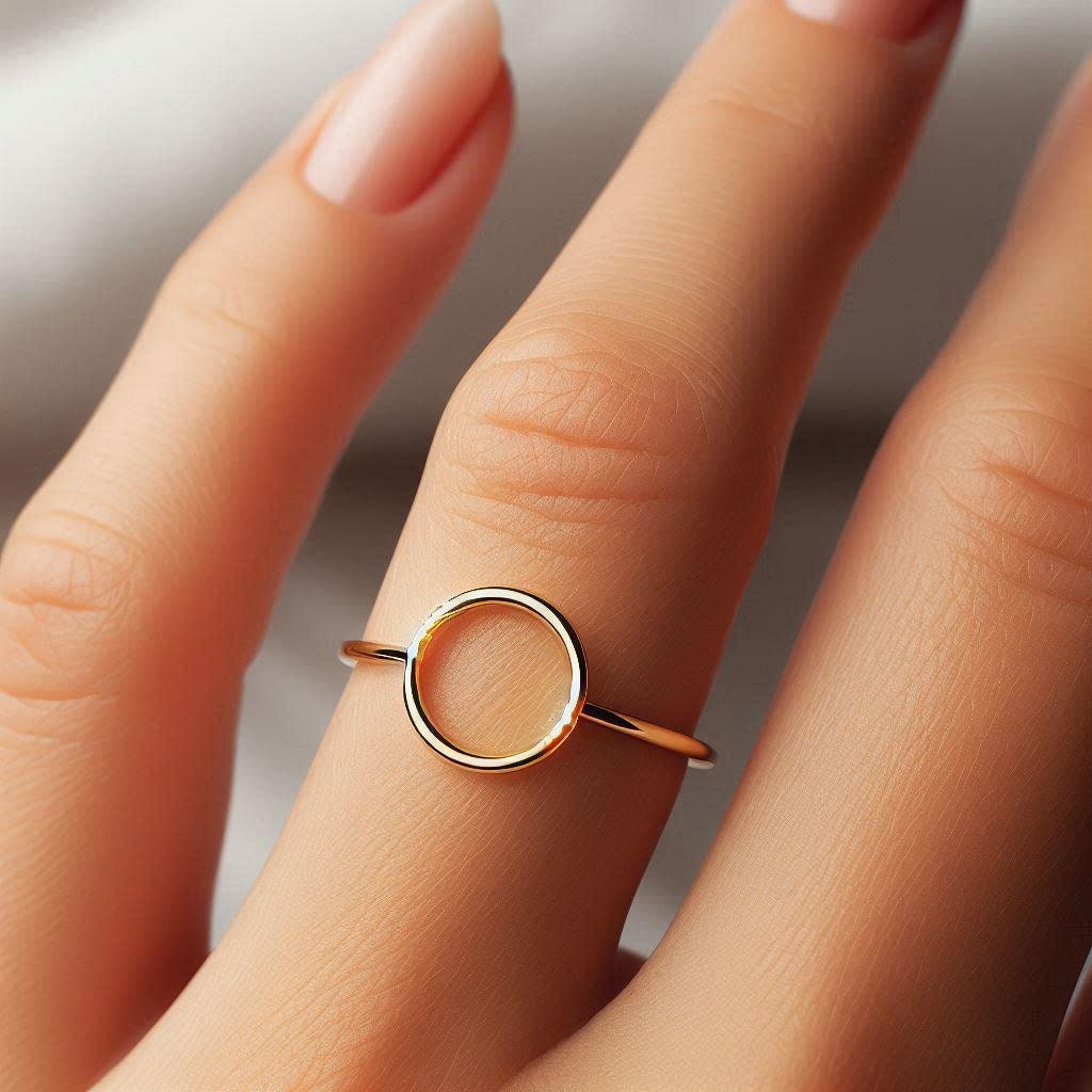 ** Dainty Solid Yellow Gold Letter ‘O‘ Ring (also available in White and Rose Gold)
