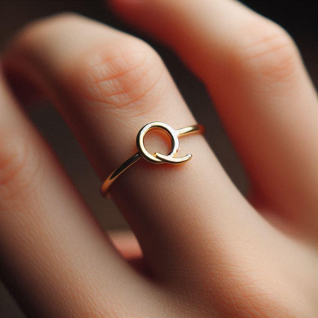 ** Dainty Solid Yellow Gold Letter ‘Q‘ Ring (also available in White and Rose Gold)