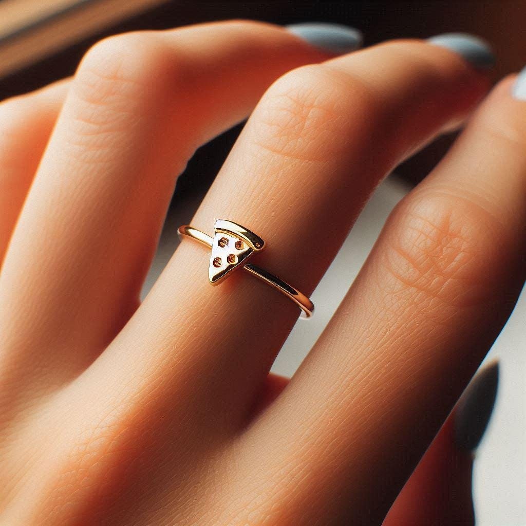 ** Minimalist design featuring an cute mini slice of pizza (9mm tall) on a 1.5mm wide band